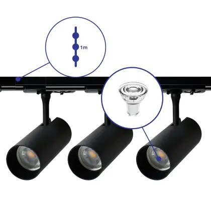 Bright Choice Complete Set 1-Fase Rail 1 Meter Zwart | incl. 3x Spot + GU10 2700K 3W Dimbaar + Eindkap, Voedingsconnector