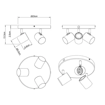 D'Lite Plafondlamp Trop Metaal Zanderig Zwart | Geschikt Voor 3x GU10