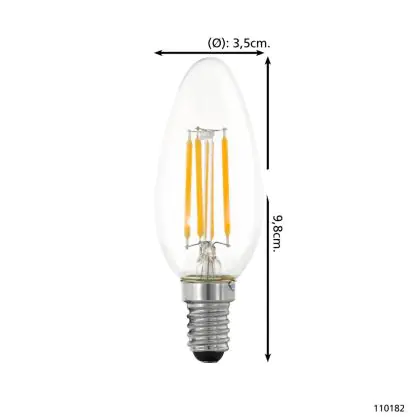 Eglo LED Kaars E14 Filament Helder 4.5W 470lm - 827 Zeer Warm Wit | Dimbaar - Vervangt 40W
