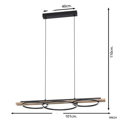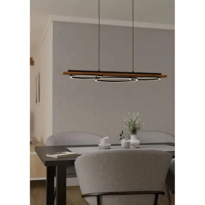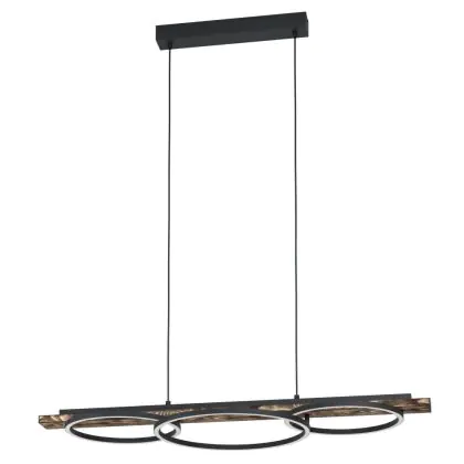 Eglo Pendelarmatuur Boyal Hout Zwart, Roestig 40.5W 3600lm - 830 Warm Wit | Dimbaar