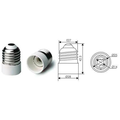 Fitting Adapter voor Lamphouders E27 => E14 Wit