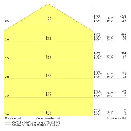 ![]() De kleurcode is een combinatie van de kleurweergave (CRI) en lichtkleur (Kelvin). Het eerste getal is de kleurweergave (1 = zeer slechte kleurweergave, 9 = maximale kleurechtheid). Het tweede en derde cijfer betreft de lichtkleur. Een lamp met kleurcode 830 heeft bijvoorbeeld een goede kleurweergave en straalt een warm wit licht uit (3000K), waar een lamp met de kleurcode 940 een uitstekende CRI heeft en een koel wit licht (4000K) uitstraalt. |