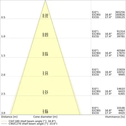 De gradenbundel geeft informatie over hoe breed het licht wordt uitgestraald. Dit zit tussen de 0 en 360 graden (D). Hoe kleiner de hoek, hoe specifieker de lichtbundel is. Over het algemeen is een smalle gradenbundel perfect voor sfeer- of accentverlichting, terwijl een brede gradenbundel ideaal is om grote oppervlaktes te verlichten.