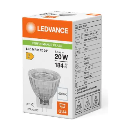 Ledvance LED MR11 Gu4 Reflector 1.8W 184lm 36D - 840 Koel Wit | Vervangt 20W