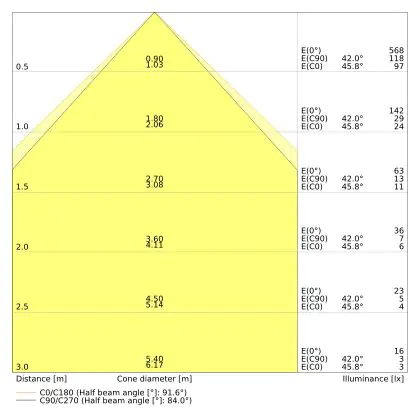 ![]() De kleurcode is een combinatie van de kleurweergave (CRI) en lichtkleur (Kelvin). Het eerste getal is de kleurweergave (1 = zeer slechte kleurweergave, 9 = maximale kleurechtheid). Het tweede en derde cijfer betreft de lichtkleur. Een lamp met kleurcode 830 heeft bijvoorbeeld een goede kleurweergave en straalt een warm wit licht uit (3000K), waar een lamp met de kleurcode 940 een uitstekende CRI heeft en een koel wit licht (4000K) uitstraalt. |