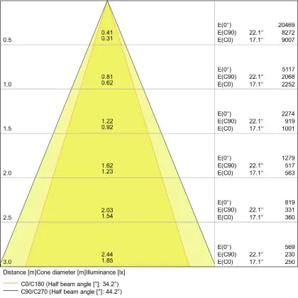 De gradenbundel geeft informatie over hoe breed het licht wordt uitgestraald. Dit zit tussen de 0 en 360 graden (D). Hoe kleiner de hoek, hoe specifieker de lichtbundel is. Over het algemeen is een smalle gradenbundel perfect voor sfeer- of accentverlichting, terwijl een brede gradenbundel ideaal is om grote oppervlaktes te verlichten.