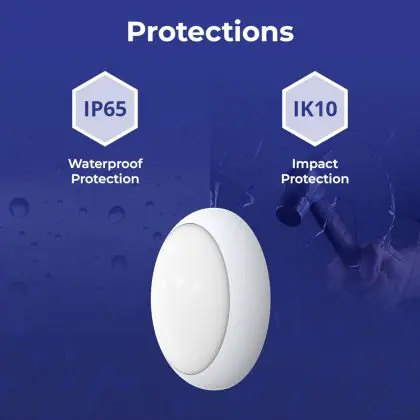 ![]() De IK waarde staat voor de slagvastheid en bescherming tegen vandalisme. Dit wordt uitgedrukt in combinatie met 2 cijfers (IK00 - IK10). Producten met IK00 zijn niet beschermd tegen weerstand, terwijl producten met IK10 weerstand bieden tegen schokken van 20 Joule en tevens vandaalbestendig zijn. |