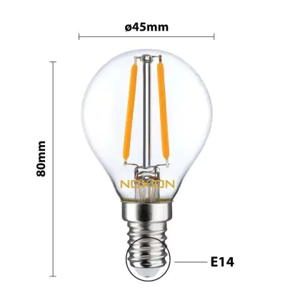 | Fabrikantnaam | Noxion Lucent Filament LED Lustre P45 E14 220-240V 2.5W 250LM CRI80 2700K DIM (25W eqv.) | |